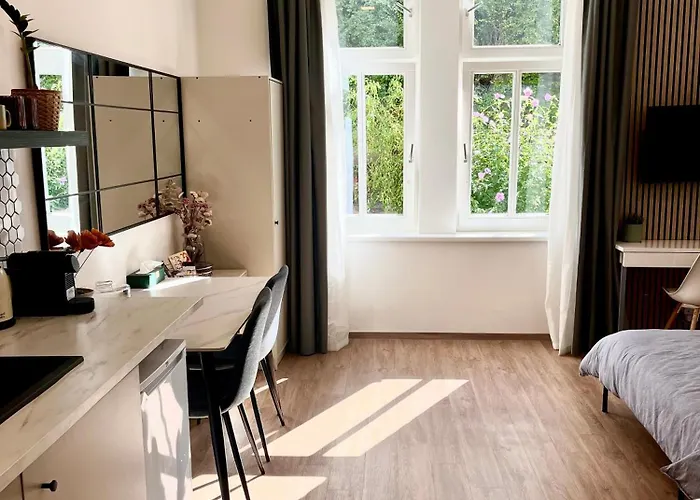 Bright And Cozy Studio 15 Minutes To City Center Praag van 31 m² heeft uitzicht over de tuin en ligt binnen 500 meter van Cross.